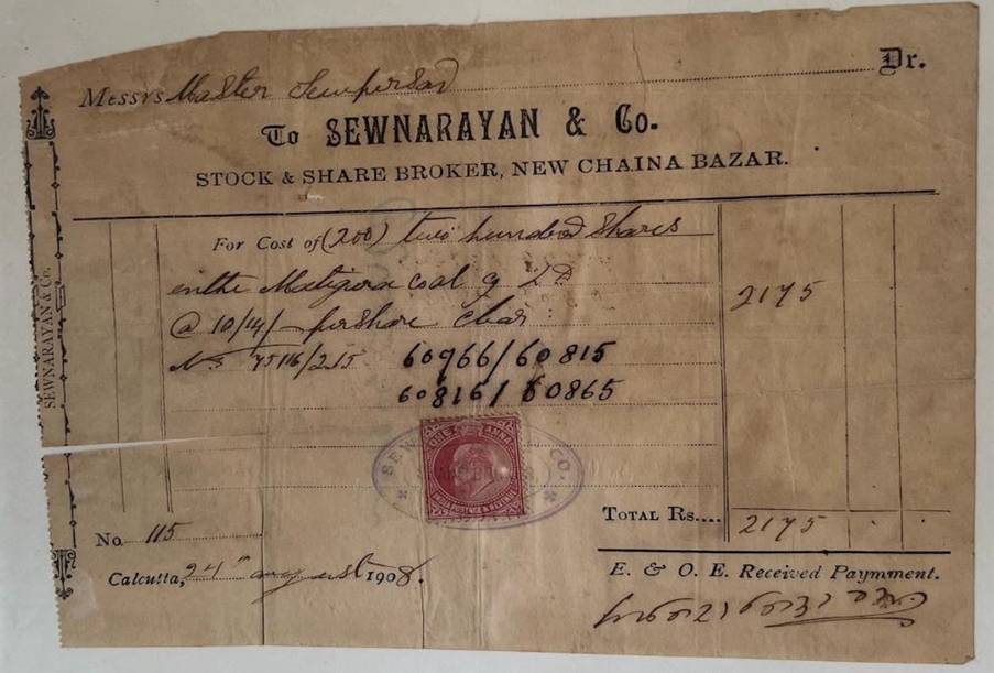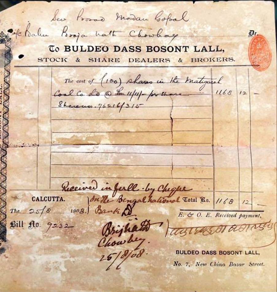 Masterji with special permission from the English Government continued with his Cotton Cloth Trading & Importing Business under the firm name of “Sheo Pershad & Sons” became a business partner of Rai Chunna mal ji (the Biggest Banker of those times) with two shops on rent provided by Chunna mal ji (one under there residential building & the other near Fatehpuri Masjid, Chandni Chowk, Delhi) with roaring business of importing Makhmal Jeans Cloth from Manchester, England with the import licenses from the English and with major investments in upcoming infrastructure & utility companies.